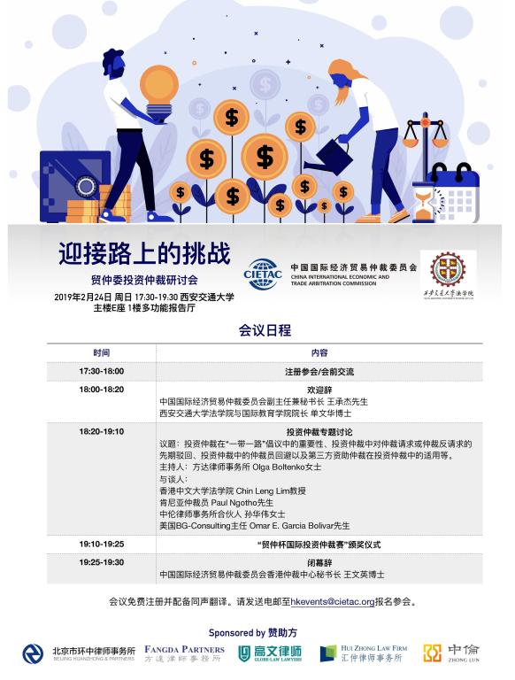 贸仲委投资仲裁研讨会暨“贸仲杯国际投资仲裁赛”颁奖仪式将于2019年2月24日下午5:30-8:00在乐动手机版主楼E座多功能报告厅举办,诚邀各位师生参加!