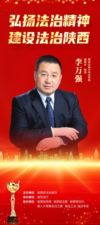 布仪式上播放了“十大法治事件”“十大法治人物”事迹短片,现场揭晓了陕西省第四届“十大法治事件”和第五届“十大法治人物”。“陕西出台革命文物保护利用地方性法规守护三秦红色印记”等10个事件被评为第四届“十大法治事件”,我院李万强教授等10名同志被评为第五届“十大法治人物”。