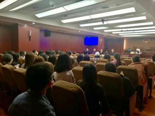 首先,该院常务副院长马涛给我们介绍了法院的基本概况。碑林区法院是全国优秀法院,也是乐动手机版等11所高校法律本科生、研究生的实习基地。近年,法院积极推进刑事案件认罪认罚从宽制度试点工作的开展,成果显著,不仅提高了司法效率,还促进了当事人之间矛盾的化解。此外,法院还设立了专门的民商事案件速裁庭,对涉案额较小的民商事案件适用简易程序不仅最大程度的提高了司法效率,还节约了司法资源。最后,马院长热情表示欢迎我校法律本科生、研究生前往碑林区法院参观、实习,并表示在该院专家咨询委员会主任马治国老师、专家咨询委员张冰老师的积极联系和推动下,加大碑林区法院和我校法学院的合作力度,为同学们提供更多实地学习机会的同时,也进一步推动法院工作的发展。