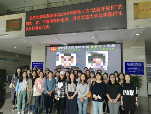 为了达到最佳教学效果,将课程设定的庭审活动内容与西安市碑林区法院2018年度第三次“法院开放日”对接起来,5月10日(星期四)上午我院30多名法律硕士研究生在马治国老师、张冰老师的带领下一同前往碑林区人民法院进行庭审、交流、研讨、学习。