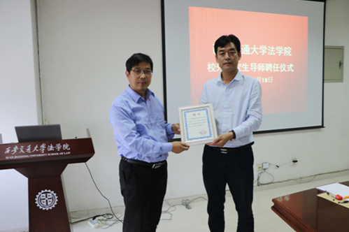 2018年5月18日下午,乐动手机版法学院法律硕士研究生“协同培养育人项目”校外导师(首批)聘任仪式暨专业实践课程教学研讨会在兴庆校区教学主楼910会议室举行。法学院党总支书记王保民教授、副院长李万强教授、副院长丁卫副教授,院长助理张生副教授、教师代表吴锐讲师和研究生代表参加了聘任仪式。