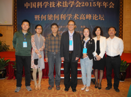 2015年11月7、8日,2015年中国科学技术法学会年会暨何梁何利学术高峰论坛在广西省来宾市召开,在法学院知识产权研究中心主任、中国科学技术法学会副会长马治国教授的带领下,法学院科技法学科研团队的代表周方副教授、李晓鸣讲师、翟晓舟讲师、张磊博士等参加了本次会议。本次年会的主题为“成果转化、智慧城市与区域创新”,法学院知识产权研究中心硕果累累,三人代表科研团队在年会上进行主题报告,五篇论文被收录年会论文集,其中两篇论文被评为本次年会优秀论文,法学院知识产权研究中心荣获“科技法学奖”。