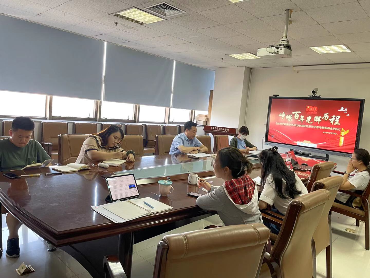 7月12日,丝绸之路国际法与比较法研究所党支部召开专题组织生活会,由联系支部的学院领导、法学院院长单文华教授结合“习近平总书记在庆祝中国共产党成立100周年大会上的重要讲话”和党史学习的心得体会,讲授专题党课。组织生活会由支部书记安婧主持,支部全体党员通过线上和线下形式参加了本次会议。