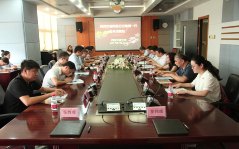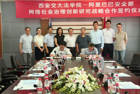 2017年7月22日上午,西安交大法学院与阿里巴巴安全部网络社会治理战略合作签约仪式在乐动手机版顺利举行。阿里巴巴集团首席风险官(CRO)刘振飞,安全部资深总监侯金刚,安全部政府事务专家李斌,法务部研究中心副主任顾伟,西安交大副校长席光,校长助理、法学院院长单文华,社会科学处长贾毅华,法学院党总支书记王保民,副院长丁卫,信息安全法律研究中心主任马民虎,副主任王玥,法学院副教授吴关龙共同出席签约仪式,法学院和信息安全法律研究中心部分师生代表参与仪式。签约仪式由法学院党总支书记王保民主持。