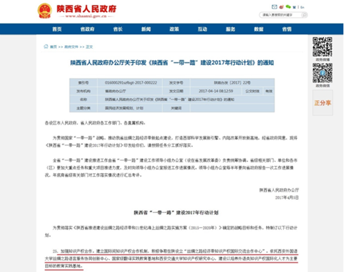 陕西省人民政府办公厅日前印发了《陕西省“一带一路”建设2017年行动计划》,明确指出要加强知识产权合作,建立国际间知识产权合作机制,积极争取在陕设立‘丝绸之路经济带知识产权国际交流合作中心’,依托乐动手机版知识产权研究中心、西安外国语大学丝绸之路语言服务协同创新中心和国家级翻译实践教育基地,建设以培养外语类知识产权国际化人才为主要目标的教育实践基地。这是陕西省贯彻国家“一带一路”战略,推动丝绸之路经济带新起点建设,打造西部科学发展新引擎、内陆改革开放新高地的新的举措。