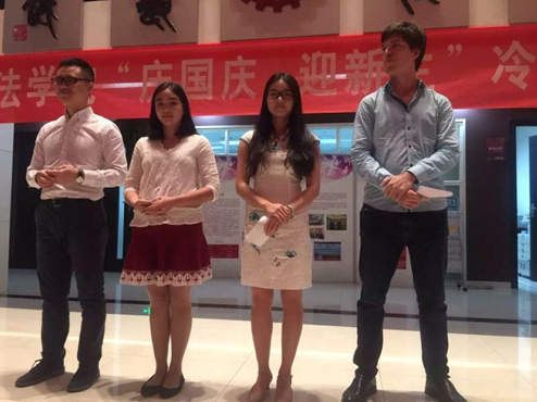 9月29日晚,主E10楼大厅灯火辉煌,暖意融融。法学院 “庆国庆、迎新生”冷餐会在这里隆重举行。院长单文华,党总支书记王保民,院长助理吉兰湘,院工会主席张弘、学生工作专职委员张乃钟、留学生教务高逸哲及法学院2016级全体新生参加了本次冷餐会。主持人由来自澳大利亚的留学生多米尼克、泰国的留学生刘美恩以及硕士一年级新生刘静洁和任丹伟担任。畅雅琛同学演奏的古筝名曲《雪山春晓》拉开了冷餐会的序幕。