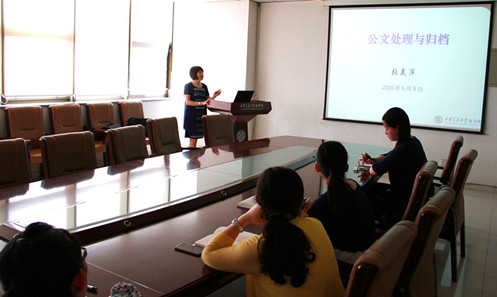 张美萍主任首先对党校刘洁婷老师和金禾经济研究中心李芮主任等的到来表示热烈欢迎,并感谢党校一直以来对行政管理工作的支持和帮助。接着,从职场礼仪、行政工作沟通与技巧、办公室收(发)文处理、文书整理与归档等四个方面进行了乐动(中国),同时,她结合自己30多年来的行政工作经验,建议平时养成做好备忘录习惯,她强调“好记性不如烂笔头”,这样便于各项工作有条不紊地完成而不被遗漏;善于将常规工作制成流程图,利于师生理解和配合各个环节的工作;在日常工作中注意表现出优雅大方的气质,在忙碌的工作中享受快乐。并特别强调办公室是学院的形象窗口,也是整个学院工作的桥梁和枢纽,各项工作务必认真严谨,须有高度的责任心,为广大师生提供热情周到的管理服务。