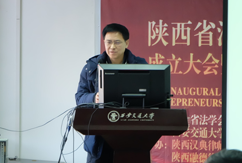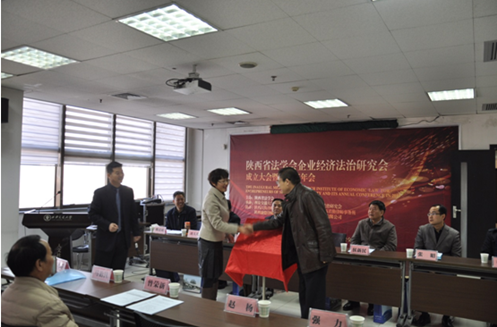 陕西省法学会专职副会长杨建军代表陕西省法学会为企业经济法治研究会进行了正式授牌并宣布陕西省法学会企业经济法治研究会正式成立。
