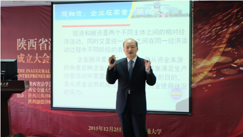 在与会代表合影后,会议进入第二时段的专题报告。报告由乐动手机版法学院知识产权研究中心主任、博士生导师马治国教授主持,陕西省法学会企业经济法治研究会顾问、西北政法大学经济法学院院长、博士生导师强力教授做了“新常态下企业投融机制创新的法律问题”讲座,阐释了中国经济已进入新常态,在新常态的条件下,企业应作出机制创新等相对应的变化,其变化主要体现在市场化,并强调投融资机制市场的多元化、多层次、多角度,分析在此种常态下,企业投融资遇到的法律问题。