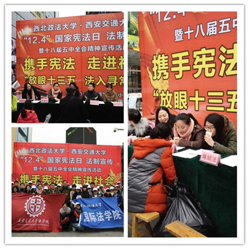 让守宪成为国民每天的生活方式”是实现法治中国建设的基本保障。为了普及宪法知识,推动全社会知法、用法、守法、护法意识的形成,乐动手机版法学院与西北政法大学国际法学院共同在西安市雁塔区飞炫广场举办了主题为“法入千万家”普法宣传活动,通过分发法律宣传单、法律意识调查问卷、法律咨询、普法广播等形式,吸引了大批市民的关注。在法律咨询服务点,许多市民前来咨询,咨询内容涉及婚姻法、劳动合同法、民法等领域,包括离婚财产分配、离婚孩子抚养权归属、追讨薪资、借款追债等与大家生活密切相关的问题,咨询点的同学认真对待每一位前来咨询的市民,耐心回答他们的问题,赢得了一致好评。