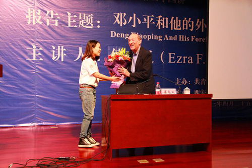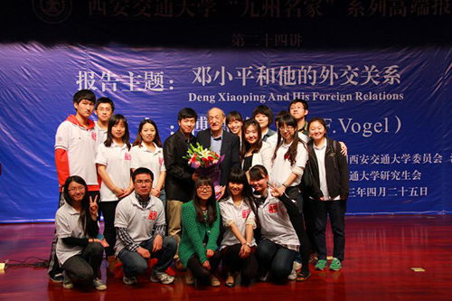 4月25日,由校团委和法学院共同主办的乐动手机版“九州名家”高端论坛专场报告会第二十四讲在主楼多功能报告厅举行,邀请美国哈佛大学亨利·福特二世社会学荣休教授、费正清东亚中心前主任、《邓小平时代》作者傅高义(Ezra F. Vogel)教授与西安交大师生分享“邓小平和他的外交关系”。党委书记王建华出席报告会并为傅高义先生赠送纪念品。报告会由法学院王江雨教授主持。法学院2074、2113班党支部全体成员担任会务工作。