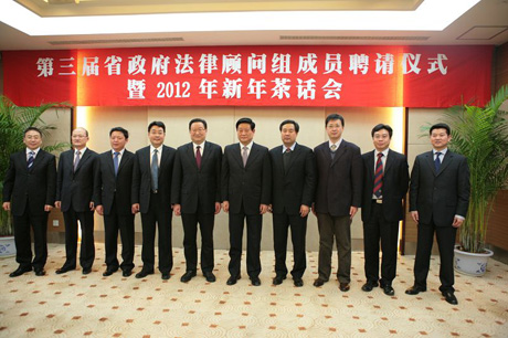 1月15日,陕西省第三届省政府法律顾问组成员聘请仪式暨2012年新年茶话会在西安召开,乐动手机版法学院院长单文华教授被聘请为顾问组7名成员之一。