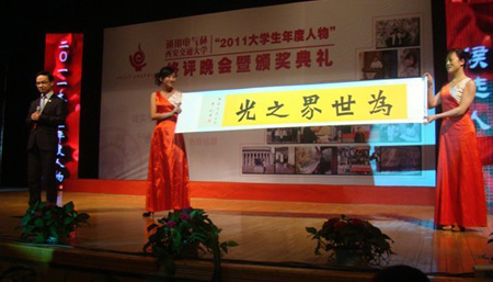 此次评选活动获得了校内外多家单位的大力支持,并吸引了全校17个学院、8个书院的学生参加。在经历了海选之后,由我院推荐的齐鹏同学成功晋级最后的终评环节。在终评环节的个人展示中,齐鹏同学通过视频短片、主持人提问和现场书法展示赢得了在场评委、学生观众的一致好评,最终齐鹏同学获得了通用电气杯乐动手机版2011年度人物提名奖。
