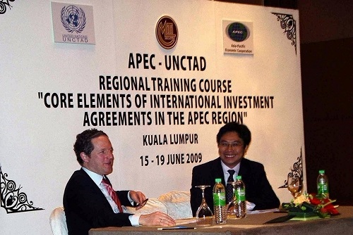 日前,我校法学院院长单文华教授应联合国贸易与发展会议(UNCTAD),亚太经合组织(APEC)和马来西亚贸工部的邀请,作为主讲和评论专家, 参加由这三个机构合作举办的题为“国际投资协定中的核心要素”的高级乐动(中国)班。