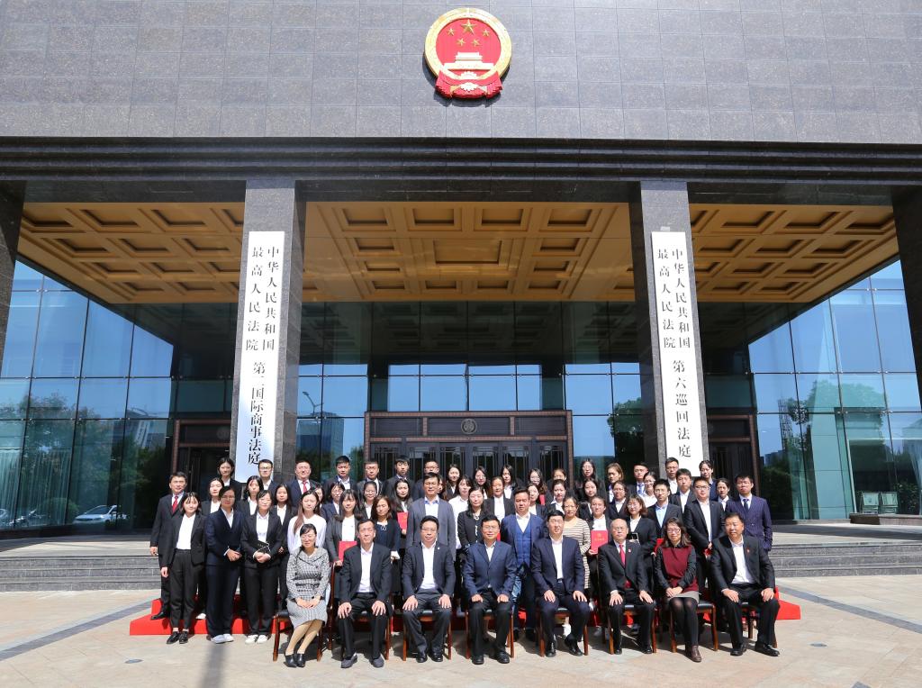 我校法学院录取为最高人民法院第六巡回法庭第四批法律实习生的六名同学是博士研究生夏伯琛、硕士研究生徐博、王恬、张一、熊晓林、贺溦。座谈会后,第六巡回法庭领导与各法学院校的负责人和第三批、第四批法律实习生合影留念。