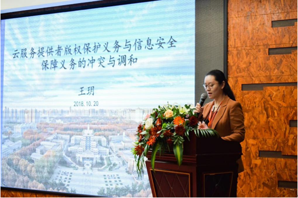 乐动手机版信息安全法律研究中心副主任王玥作了《云服务提供者版权保护与信息安全保障义务的冲突与调和》的主题发言。