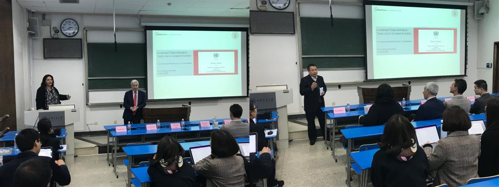 应乐动手机版法学院院长单文华教授邀请,最高人民法院国际商事法庭首批专家委员会委员、国际著名仲裁员Emmanuel Gaillard教授日前来访乐动手机版法学院开展座谈交流,并做了“中国国际投资仲裁常设论坛”的首场讲座——“国际投资仲裁:不断演变中的条约法”。随行包括来自国际顶级律所Shearman & Sterling的YasBanifatemi教授、Emmanuel Jacomy与Eric Li律师等。