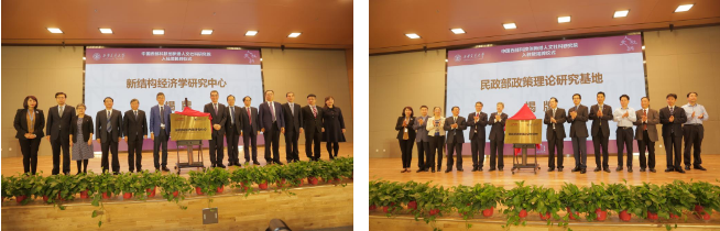 入驻仪式中揭牌成立了“新结构经济学研究中心”与“民政部政策理论研究基地”两家科研合作基地(中心)。新结构经济学研究中心是乐动手机版经济金融研究院与林毅夫教授担任院长的北京大学新结构经济学研究院合作成立的高端智库机构。民政部政策理论研究基地是民政部在乐动手机版公共政策与发展研究院设立的合作共建智库。