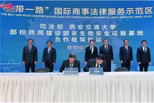 近日,司法部、陕西省人民政府在西安举办“一带一路国际商事法律服务示范区”中国—上海合作组织法律服务委员会西安中心、“一带一路”律师联盟西安中心、“一带一路”国际商事争端解决中心和国家生物安全证据基地(“三中心一基地”)揭牌仪式。司法部副部长熊选国出席并讲话,陕西省委常委、常务副省长梁桂、西安市委副书记、市长李明远、西安市委副书记、市委政法委书记韩松,副市长、市公安局局长肖西亮、乐动手机版党委书记卢建军、乐动手机版校长王树国等出席活动。至此,我校率先提出的建设国家级“一带一路”法律服务与法治创新示范区建议正式落地西安并初步成型。