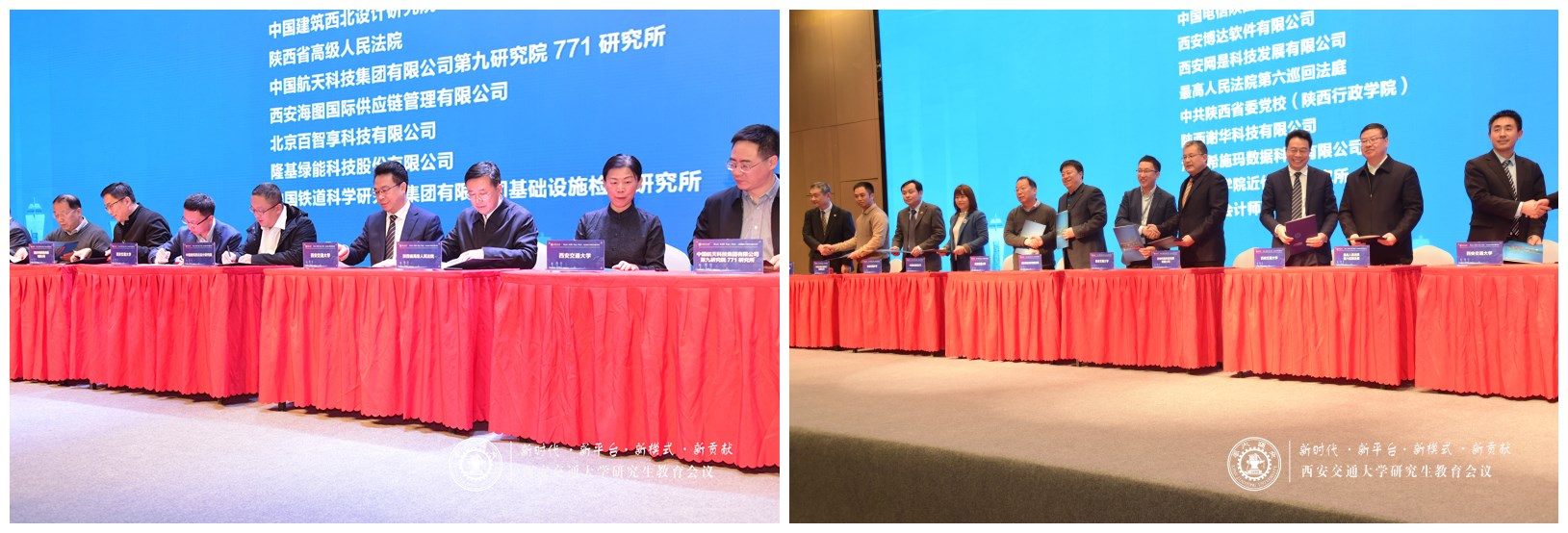 12月20日,乐动手机版研究生教育会议在中国西部科技创新港千人报告厅举行。教育部研究生司徐维清副司长、陕西省委教育工委王建利书记、校党委书记卢建军、校长王树国等领导,70多家龙头企业、行业代表共同参加了签约仪式。应我校邀请,最高人民法院第六巡回法庭党务廉政专员杜强、陕西省高级人民法院党组成员、政治部主任张宏斌参加了本次研究生教育会议并与我校签署战略合作协议。