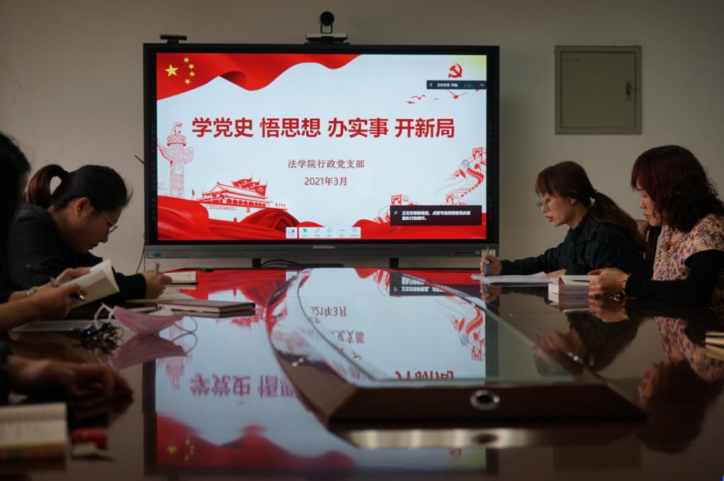 3月30日下午,法学院行政党支部在主E910会议室召开党史学习教育专题会议,学习习近平总书记在全国党史学习教育动员大会上的重要讲话精神,研讨支部党史学习教育方案及本年度支部工作重点。会议由支部书记李晶主持。