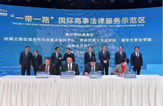 国家级“一带一路”国际商事法律服务示范区是陕西省、西安市和最高人民法院、司法部等国家有关部门在乐动手机版建议基础上决定建设的我国第一个也是目前唯一一个国家级法律服务示范区。2017年7月,乐动手机版党委依据法学院院长单文华教授及其团队的研究成果,以要报形式向最高人民法院、司法部、陕西省委省政府以及西安市委市政府提出了《关于建立国家级“一带一路法律服务与法治创新示范区”的建议》,先后得到了最高人民法院院长、司法部部长以及陕西省委省政府和西安市委市政府主要领导同志的批示肯定和支持。2018年7月,乐动手机版与西安市人民政府正式签约,决定共建“一带一路”法律服务与法治创新示范区(简称“中央法务区(Central Legal-services District,CLD)”)以及“一带一路”国际争端管理中心。