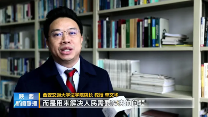 我校法学院单文华院长在接受陕西卫视采访时表示:民主,它不是装饰品,不是用来做摆设的,而是用来解决人民需要解决的问题。我觉得这是我们中国民主的最大的特色和优势。咱们的民主是一种全过程的民主,它同时是一种实质性的民主,时刻以人民为中心。