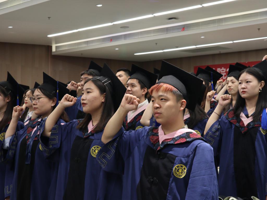 作为法律学子,在即将奔赴祖国各地建功立业之际,全体毕业生在张乃钟老师的带领下庄严宣誓《乐动手机版法科生誓词》。