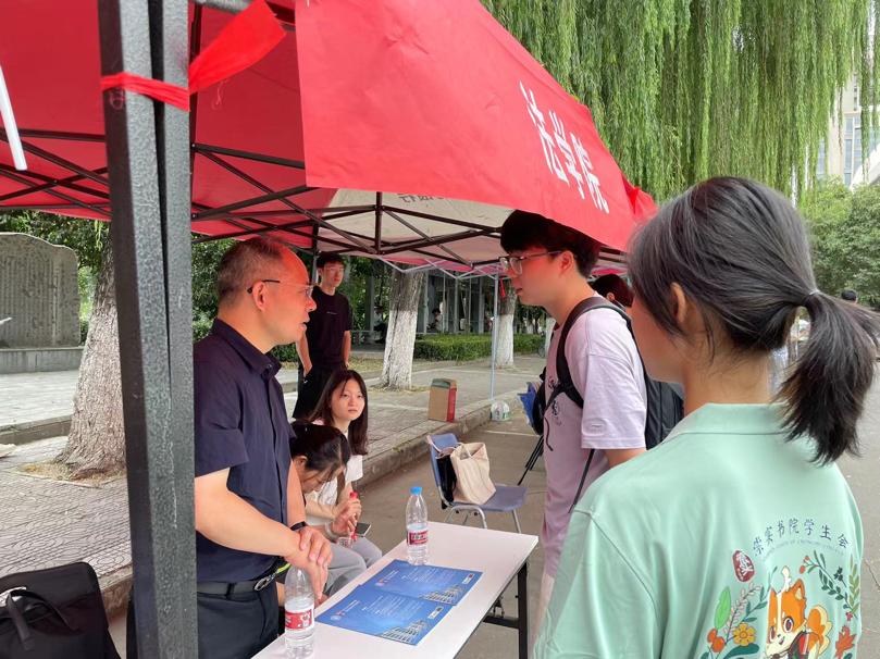 上午8时,校长助理、法学院院长单文华教授,党总支书记王保民教授,副院长丁卫副教授,学生工作专职委员张乃钟等一行在兴庆校区南门法学院迎新点欢迎来自全国各地的新同学,现场一起和迎新志愿者们解答新生们的问题,和家长们唠家长,迎新点现场欢声笑语,其乐融融。