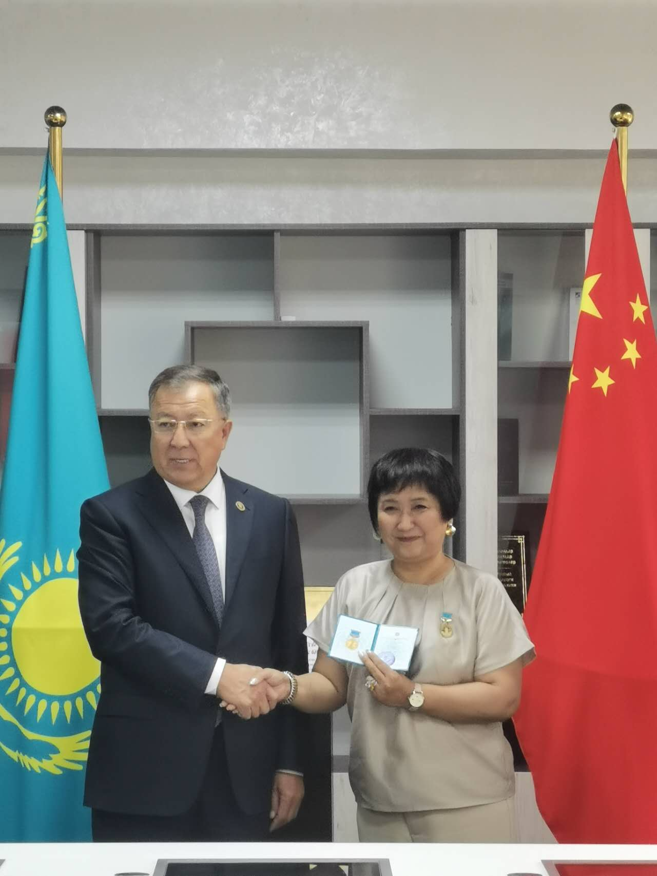 会上,乐动手机版法学院索菲娅(Ushurova Sophiya)教授的新作《21世纪中国的外交政策模式及其实施》(“当代中国”系列丛书)作为“中国-中亚法治联合研究中心”的最新研究成果,在揭牌仪式上正式发布。该书由俄罗斯莫斯科R.Valent出版社于2024年3月出版,合作作者为西安外国语大学Dubkova Olga教授。同时,哈萨克斯坦国立大学图梅巴耶夫校长还向索菲娅教授颁发了该校的荣誉勋章。