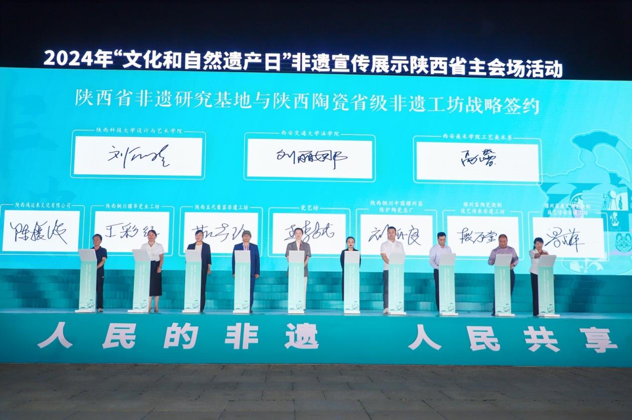 在启动仪式上,乐动手机版、西安美术学院、陕西科技大学三家陕西省非物质文化遗产研究基地与7家陕西陶瓷省级非遗工坊(铜川市耀州窑唐宋陶业有限公司、铜川市印台区东方古镇陶业有限公司、陕西铜川中国耀州窑陈炉陶瓷总厂、陕西火凤凰耀州官窑有限公司、陕西五代柴窑文化科技发展有限公司、陕西铜川耀华瓷业有限公司、陕西鸿运来文化有限公司)签订战略合作协议。