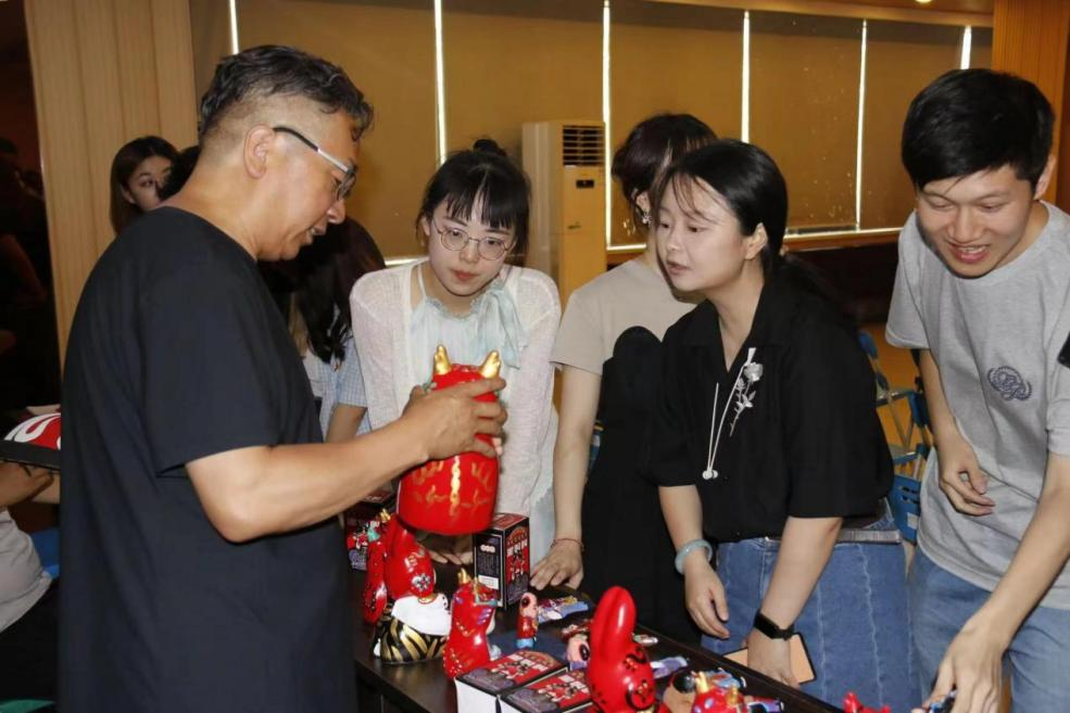 随后,师生们分成五组轮流体验五种非遗项目。省级非遗项目传承人鱼化泥叫叫杨帆老师带领大家吹响了泥叫叫,现场气氛十分欢乐。莲湖区级非遗项目如意面花传承人王磊老师的指导下,同学们亲手制作粽子、南瓜、柿子、醒狮等形象的如意面花。临潼区级非遗项目夏家刺绣传承人夏璐璐老师让大家亲自体验了制作绣有传统五毒图案的粽子香囊的过程。省级非遗项目关中秦腔戏剧脸谱陈耀武传承人为大家讲解秦腔脸谱的绘制过程,同学们意识到,戏剧脸谱更是中华民族传统文化的重要载体。雁塔区级非遗项目非遗唐流彩张双敏传承人在特制的水溶液“画板”上绘制各种图案,让同学们纷纷对非遗文化的精湛技术和历史底蕴赞叹不已。