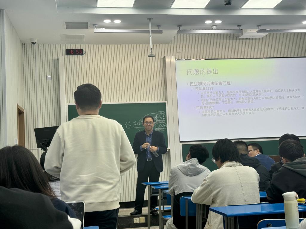 在师生交流环节中,同学们就跨法域的体系冲突与调和问题提出了诸多思考与问题。如徐瑾同学提出:“将未成年人列为共同被告,对未成年人来说是否太过残酷?”刘恒旭同学提出:“中国法律中没有明确规定责任能力,那么外国法律中是否存在对于这一概念的相关规定呢?刘哲玮老师针对这些问题一一回答,深入浅出、一针见血,让在场的同学都收获颇丰。”