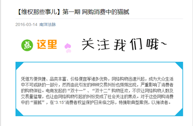 本届“春之声”法律文化节,法学院团工委、研究生会创新宣传方式,通过“南洋法脉”等官方微信平台,推出“维权那些事儿”等专题栏目,全方位、多角度地介绍生活中消费维权的真实典型案例,并通过朋友圈等方式积极转载,旨在帮助更多的人洞察消费侵权事件,掌握消费维权技巧,传递消费维权信仰,真正做到有效维护自身合法权益。此种方式的普法宣传,受到了大家的一致认可。