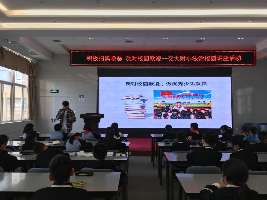 2019年4月15日,乐动手机版法学院硕7155班(三年制)党支部一行10人来到乐动手机版附属小学,以“积极扫黑除恶,反对校园欺凌”为主题开展了校园法治宣讲活动。本次宣讲分三组进行,由浅入深,以视频、情景表演、信件沟通等方式形象生动的向小学生们传达了面对校园欺凌,该如何保护自己,如何拿起法律的武器保护自己的权益。