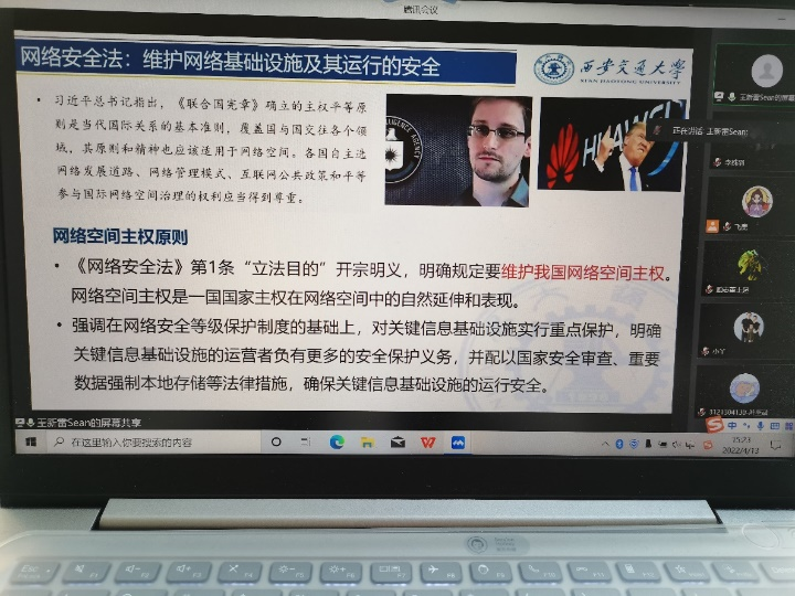 4月13日,法学院组织各党支部一同观看乐动手机版全民国家安全教育普法讲座。由于疫情原因,本次讲座采取线上模式。讲座中,王新雷老师对“新时代我国数据安全、隐私保护的法律成就与个人担当”这一专题进行详细讲解,各位同学都获益匪浅。