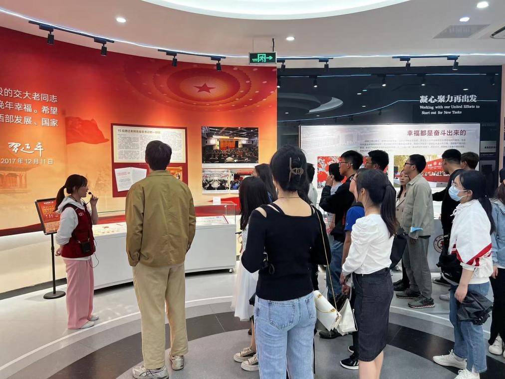 走进展厅,全体同学在讲解员的带领下一起回顾西迁历史,认真聆听西迁人的故事,学习感悟伟大的西迁精神。展馆内容分为溯源、西迁和致远三个部分,以图文实物和多媒体等展陈形式溯源南洋、致敬西迁、向西而歌,集中体现了西迁人“听党指挥跟党走”“打起背包就出发”,筚路蓝缕西迁创业的艰苦历程和辉煌成就,展示了西迁精神激励一代代知识分子奋勇前进的磅礴伟力。一层的溯源部分展示了1896年至1955年间交通大学兴学强国的发展历程。二层的西迁部分呈现了1956年至2017年间波澜壮阔的交大西迁故事和西迁后学校的发展情况,集中展示了西迁的历史背景、战略实施和交大扎根西部培养和创建一流师资队伍、开展一流科学研究、励志创新铸就伟大西迁精神的奋斗报国历程。三层的致远部分主要展现了2018年至今西安交大紧紧围绕党和国家战略目标在人才培养、科学研究、社会服务和文化传承等方面续写的世纪新篇章。一件件实物、一张张照片历经沧桑,传承至今,见证着交大的成长和发展,承载着动人故事,更反映出西迁人不变的初心、坚定的信念,浓厚的爱国情怀和殷殷的报国精神。