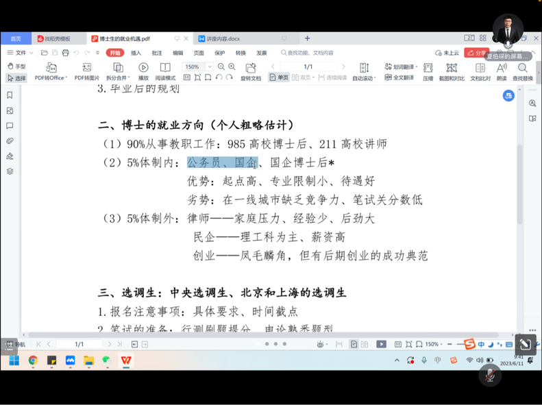 为加强学院就业指导和就业育人工作,助力法学院学子对未来发展的职业规划,法学院于6月11日举办了线上就业经验分享交流会,学院2024届全体研究生参与了会议。